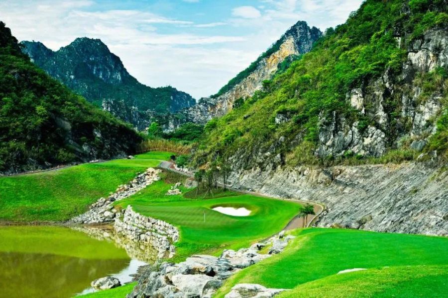 Sân gôn nổi bật với phong cách thiết kế tận dụng tối đa địa hình tự nhiên hiểm trở và tuyệt đẹp của Hà Nam: