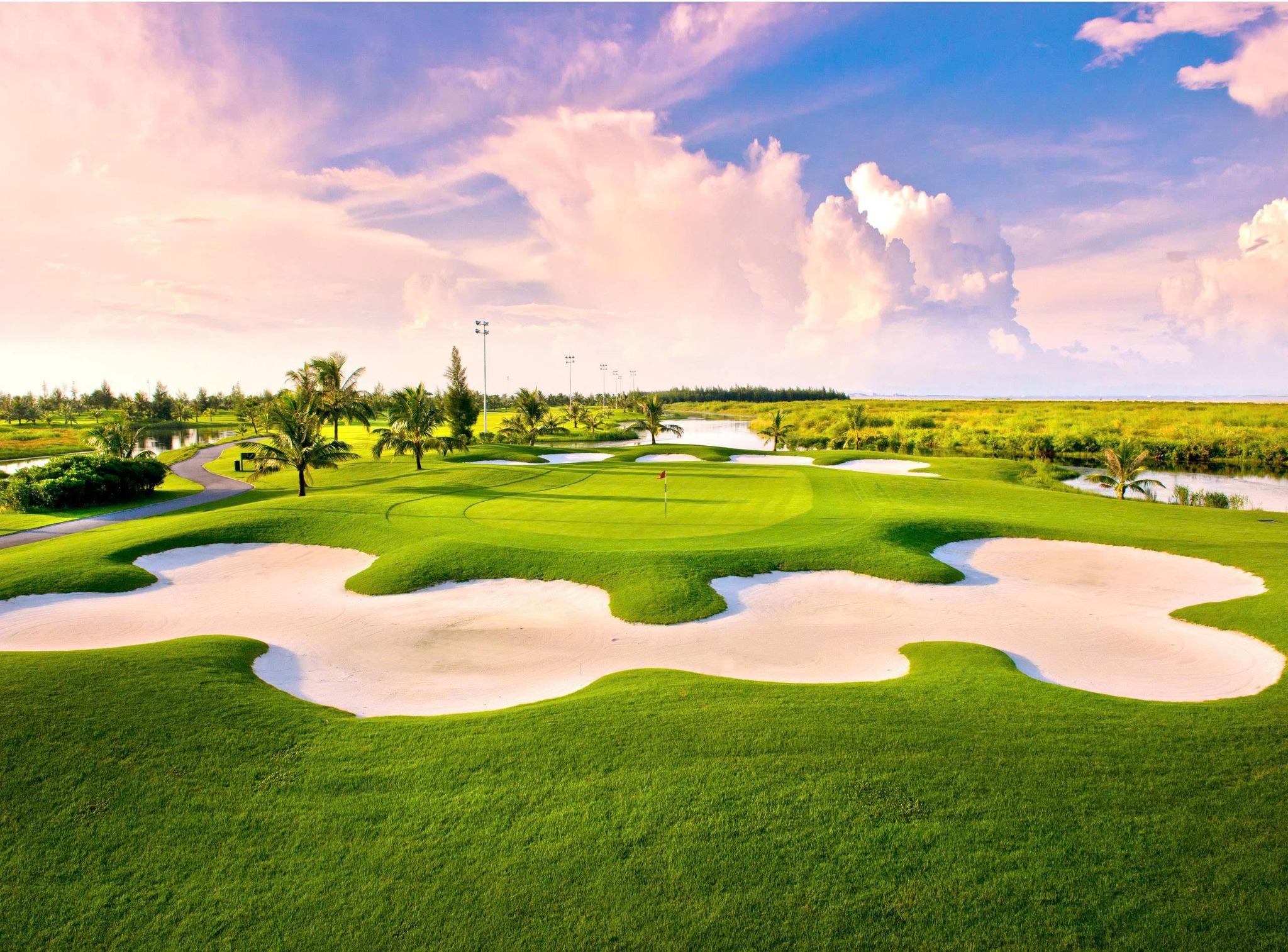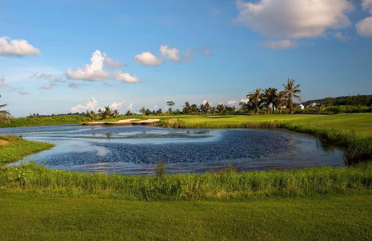 Cách bố trí lý tưởng dừa thành hàng dọc theo fairway trên rough tạo ra một bầu không khí tuyệt vời của khu du lịch ven biển. Những bẫy cát được tạo hình mang đầy tính nghệ thuật cùng với các dòng nước tự nhiên uốn mình theo dáng cong của khu du resort mang lại một sự thanh bình, yên ả mà người chơi gôn nào cũng dễ đem lòng yêu mến.
