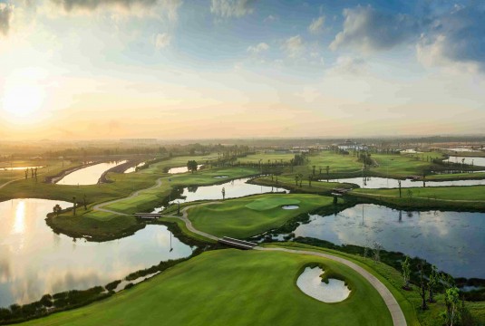 - Quy mô & đẳng cấp châu Á: Trải rộng 200 ha với 36 hố tiêu chuẩn quốc tế, chiều dài gần 7.700 yards – nằm trong top sân golf dài nhất châu Á.