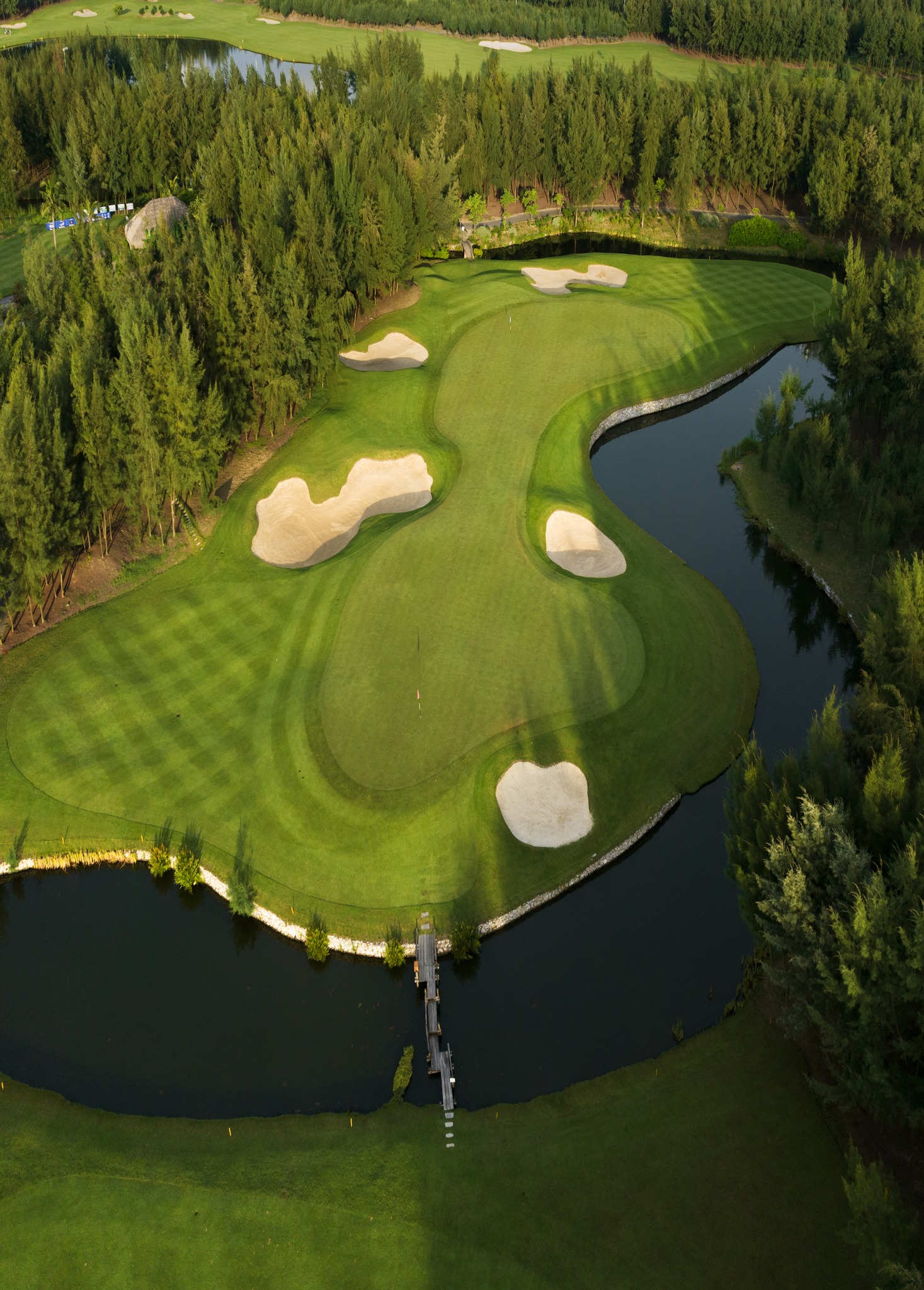 Thiết kế: **Nicklaus Design** (Hoa Kỳ), mô phỏng phong cách Links cổ điển, tận dụng gió và cồn cát.