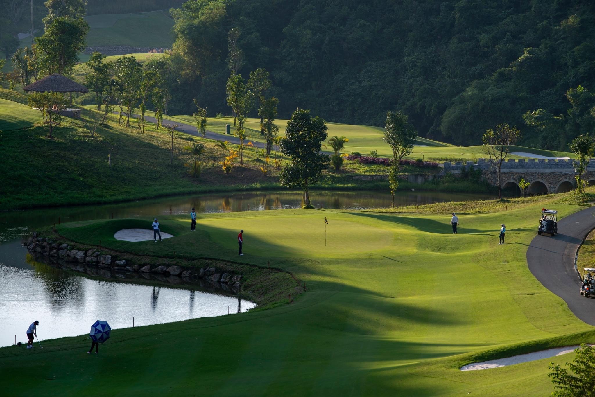 Located 60km west of the center of Hanoi, it takes golfers less than 1 hour to reach Hilltop Valley Golf Club. The first impression is definitely a quiet, relaxing space filled with green fairways, the sound of babbling streams interspersed with pure white sand pits. But hidden behind that peaceful appearance, an attractive challenge is ready to open up to golfers. True to its name: Hilltop Valley, the 27 golf holes are divided into 2 distinct parts: Valley and Hilltop. The first 9 holes are gentle and romantic like a love song, helping you easily achieve par, even Birdie and Eagle. However, from hole 10 onwards, the drama is pushed to a high level with par 3 holes pouring straight from the tee on the top of the hill to the green. The feeling of excitement is pushed up at holes 14, 15, 16 with steep and extremely complex terrain. The drama is pushed up higher and higher when going to road C, 9 holes from 19 to 27 are more and more difficult, more and more beautiful. Holes 20, 24 and 26 are truly a gift from nature to the land of Hoa Binh. Golfers should bring a camera to capture the heavenly scenes. Do you love golf? Are you busy with your daily work? Do you want to get away from the crowded city? Try to set foot in Hilltop Valley Golf Club once. Try it, experience it and be passionate. Hilltop Valley is always ready to welcome you.