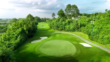Với diện tích rộng hơn 350ha, trong đó khoảng 100ha là đồi cỏ và nằm ở vị trí đồi cao, được bao bọc 2/3 chu vi bởi các nhánh sông Đồng Nai nên khí hậu nơi đây rất mát mẽ, trong lành và phong cảnh thiên nhiên đẹp hiền hoà, thơ mộng. Hiền hoà mà quyến rũ. Quyến rũ bởi những đường golf được thiết kế uốn lượn, quanh co xuyên qua những hàng cọ, những ao hồ nhân tạo và những thác nước tung bọt trắng xoá, cỏ sân golf là giống cỏ Paspalum chuyên dùng cho sân golf không chỉ tạo độ chính xác cho người chơi golf mà còn góp phần với cảnh quan, với khí hậu mát mẽ nơi đây tạo cho người chơi cảm nhận được giá trị thư giãn tuyệt đối.