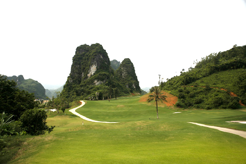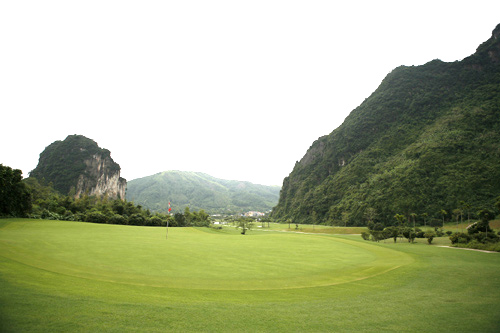 With its special terrain surrounded by mountains and forests, this Luong Son golf course is affectionately called "Ha Long on land". The smooth green grass and the green tree system stretch out as if to add to the poetic landscape of this golf course.