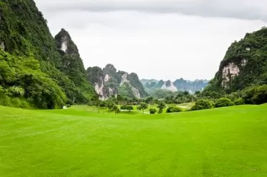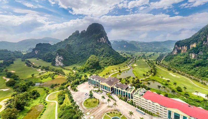 산과 숲으로 둘러싸인 특별한 지형을 자랑하는 이 루옹손 골프장은 "육지의 하롱"이라는 애칭으로 불립니다. 매끄럽고 푸른 잔디와 푸른 나무들이 마치 시적인 풍경을 더하듯 펼쳐져 있습니다.