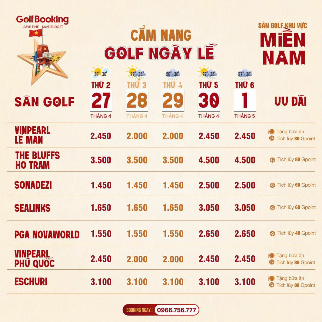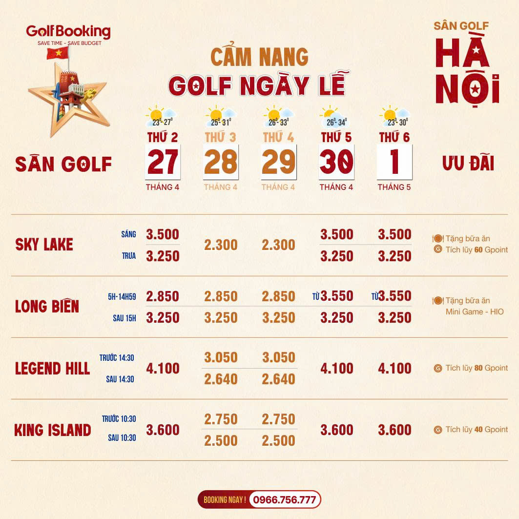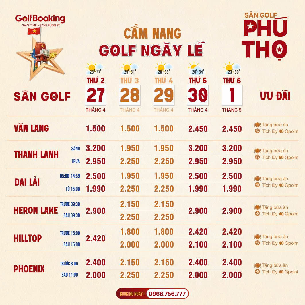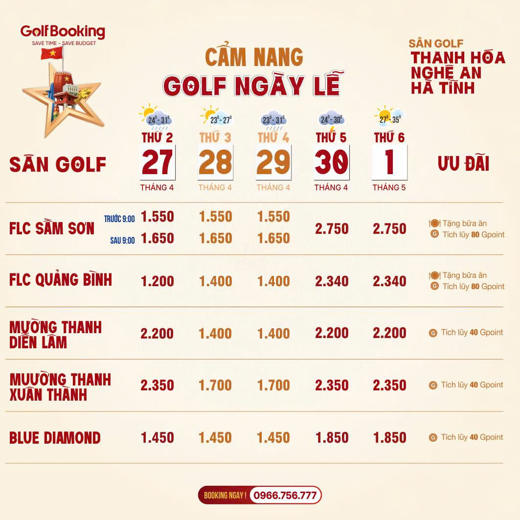 Lưu ý: Teetime ngày lễ thường hết rất nhanh. Quý Golfer hãy liên hệ sớm để giữ giờ đẹp!