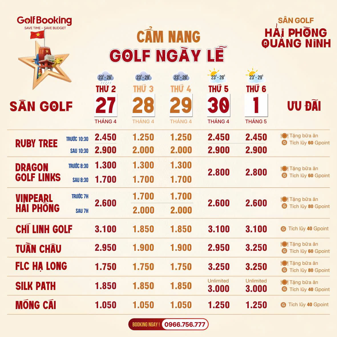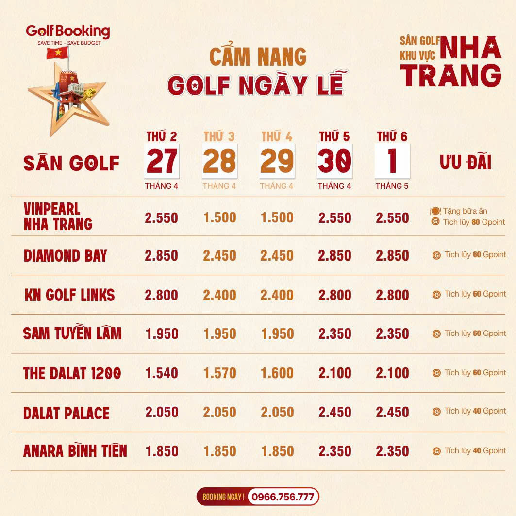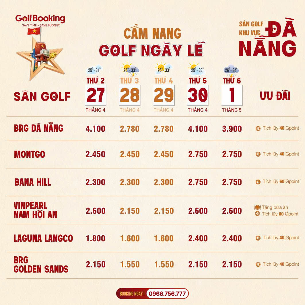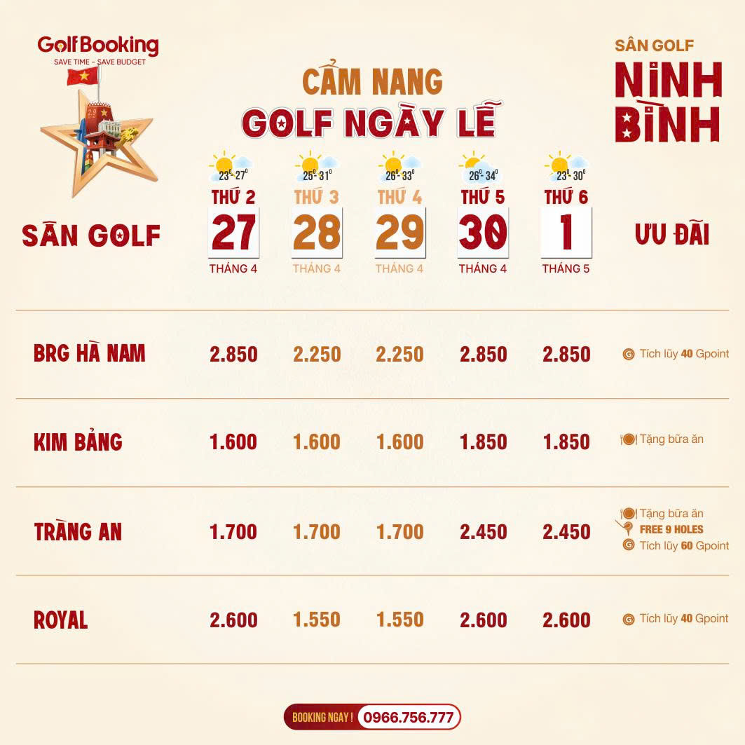 Lưu ý: Teetime ngày lễ thường hết rất nhanh. Quý Golfer hãy liên hệ sớm để giữ giờ đẹp!