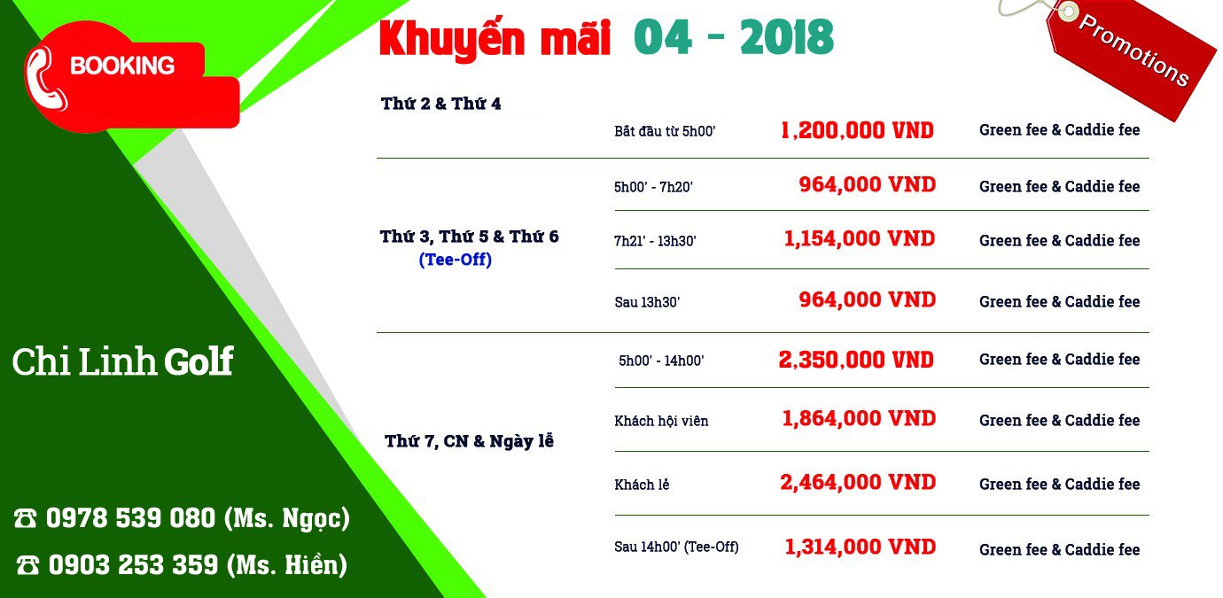 [Khuyến mại - PROMOTION] đặt sân golf - Đặt teetimes tại Chi Linh Golf Club - Promotion April - Golf Booking